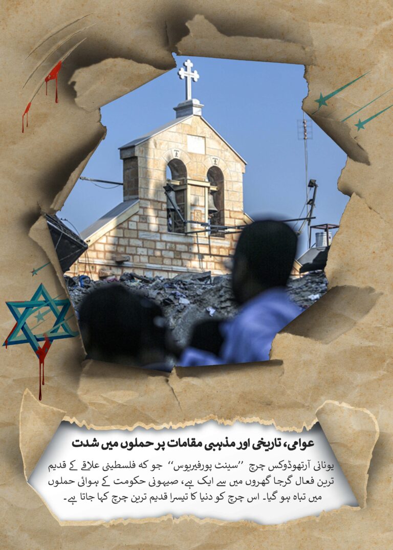 اس صفحہ کے آخر سے “غزہ کی پٹی میں صیہونی حکومت کی جانب سے نسل کشی میں شدت لانے” کے پوسٹرز ڈاؤن لوڈ کریں۔